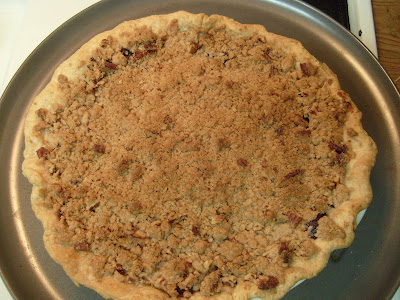 Mix all together and let sit. Fill pie crust and top with crumb topping and bake 1 hour at 375 degrees or until golden brown on top.